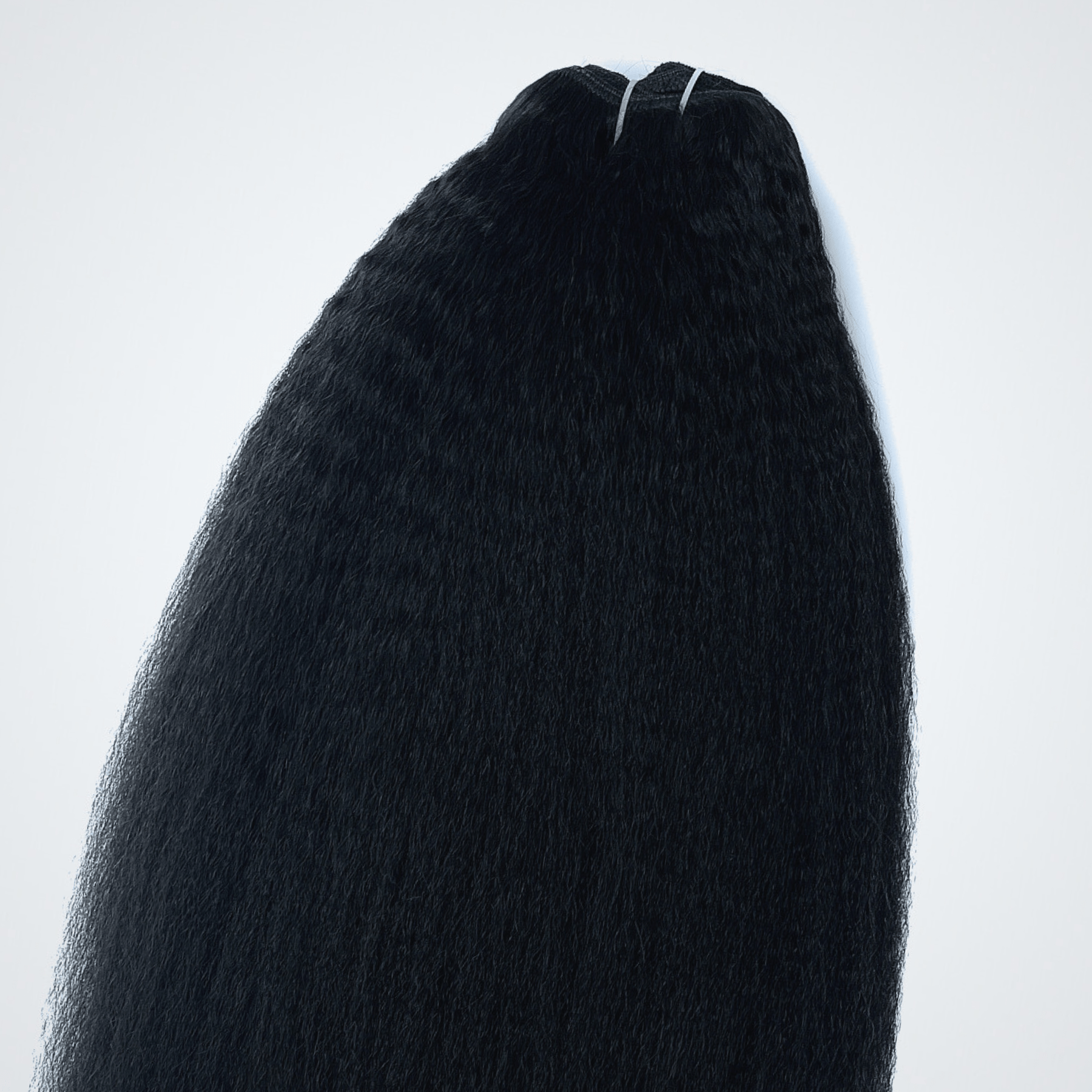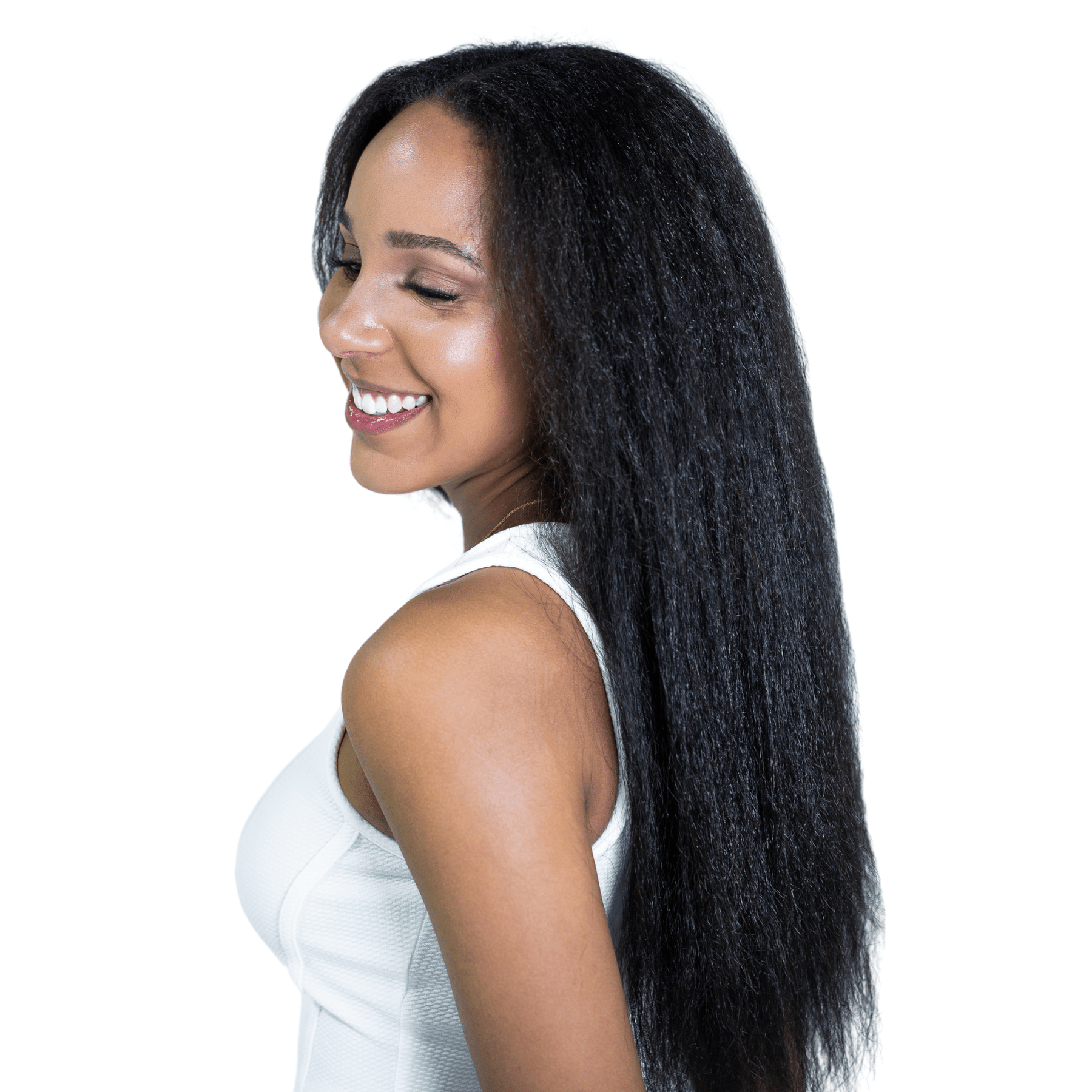 Our Coilycue Kinky Straight crochet extension is made from 100% virgin human hair and steam processed to ensure a perfect texture match for your natural hair blown out.